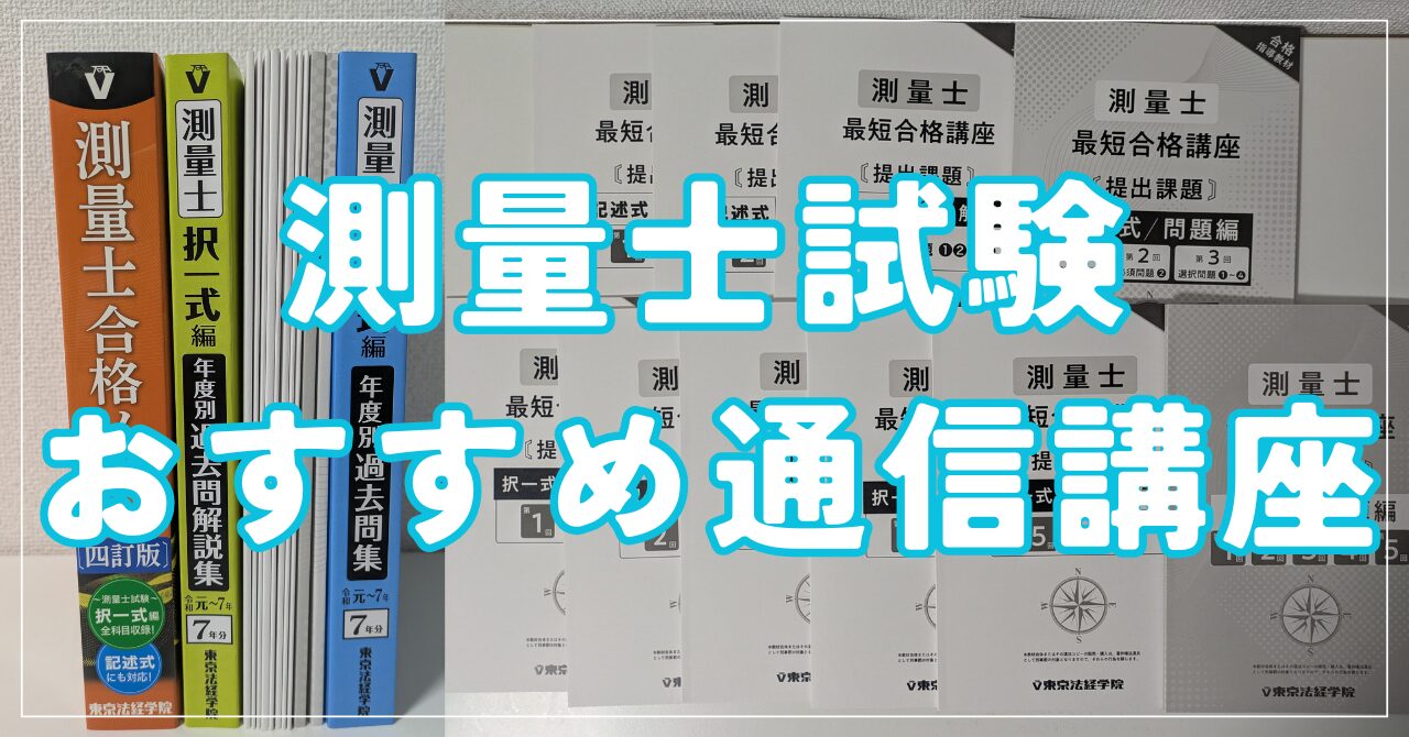 | 日本測量協会 通信添削講座 | 59,000円 | なし | ・講義映像なし、テキスト送付あり ・添削やアドバイスあり、それに対する質問も可能(郵送のみ) ・一般教育訓練給付金対象 ・講習期間は12月1日からの6か月間 |