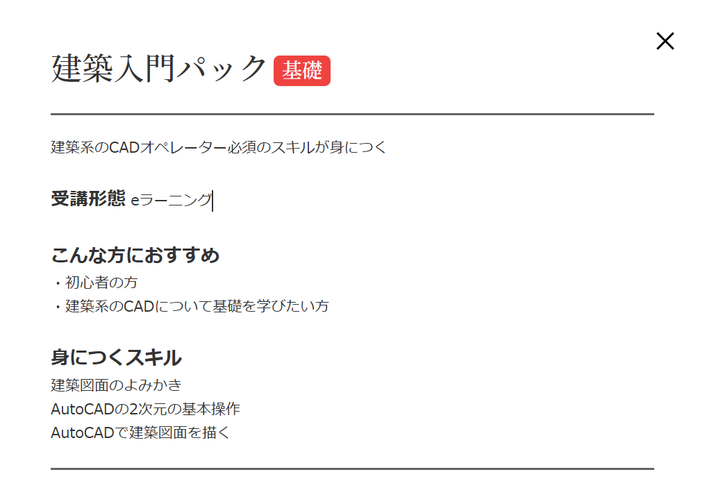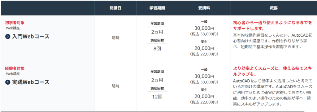 ほぼ自分用の記事ですので、CADの使い方を学ぶための通学・通信講座を調べて得られた結論だけ書きます。